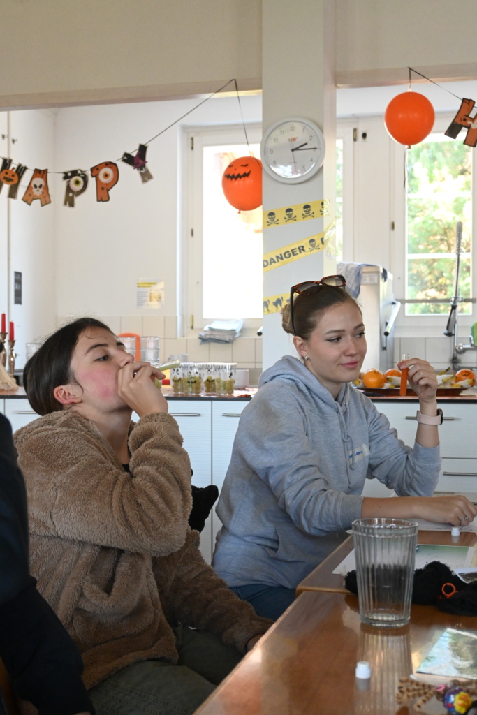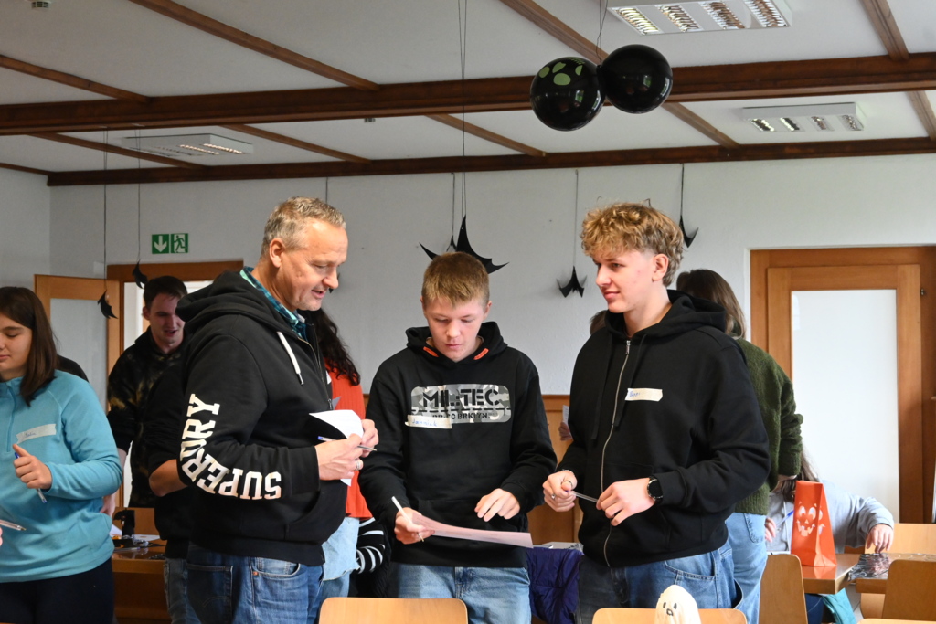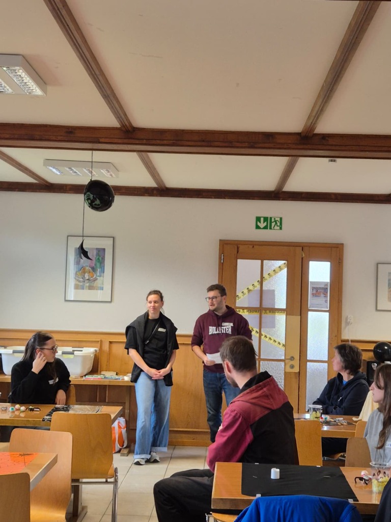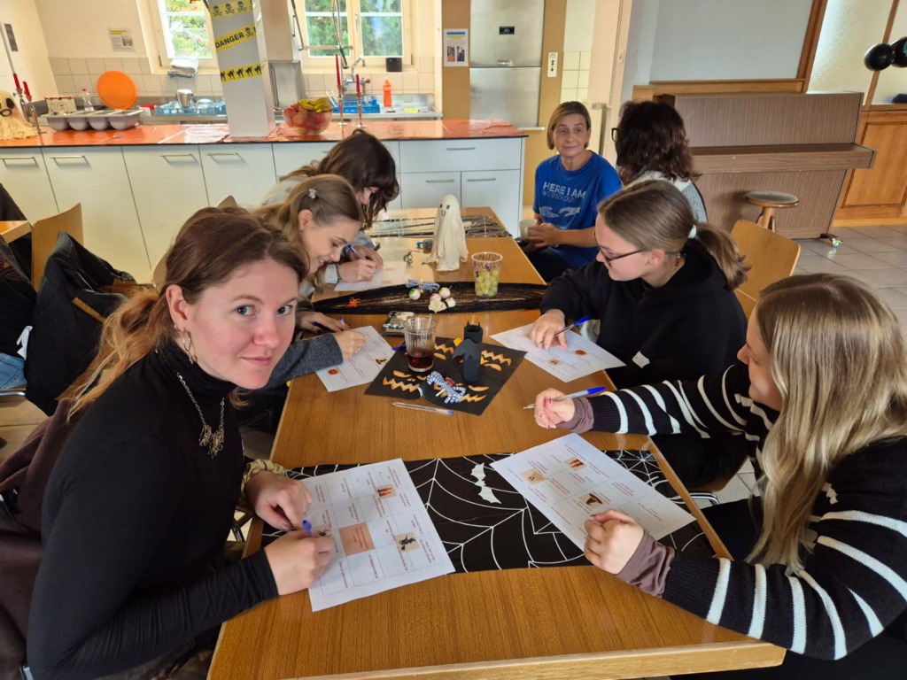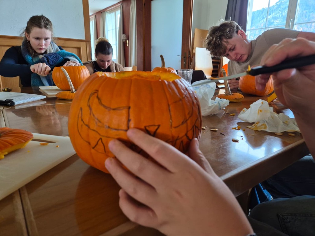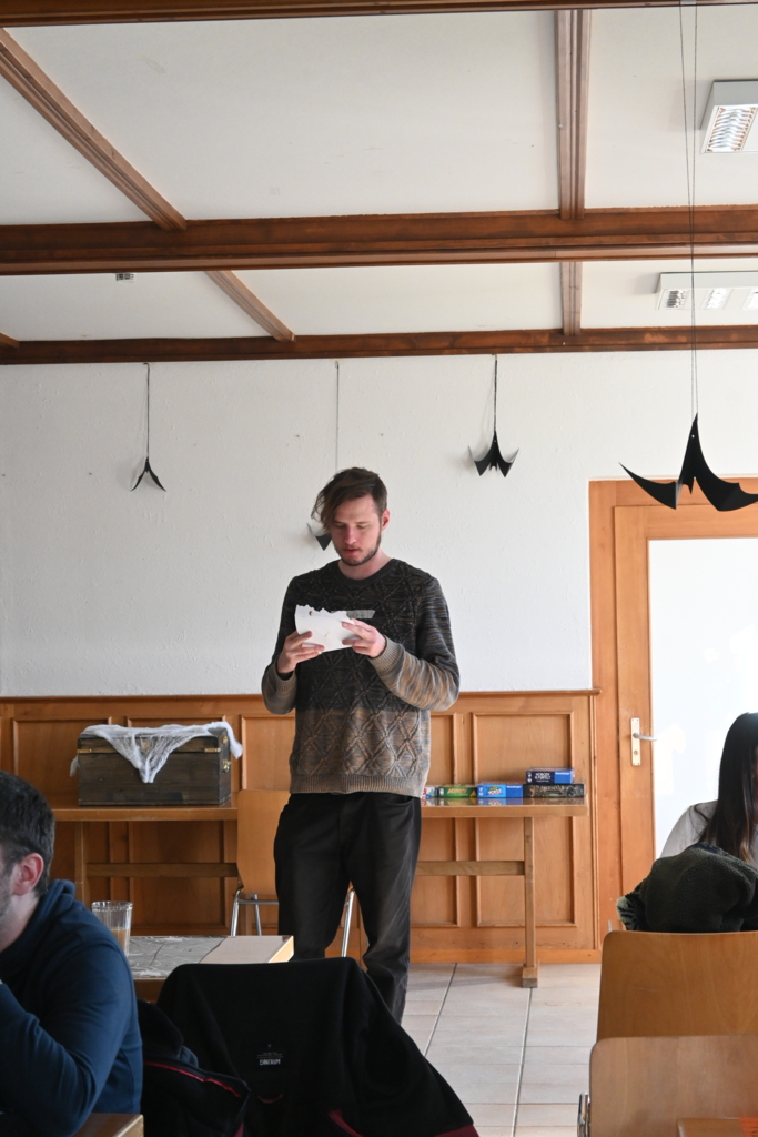 Dieses Jahr gruselte es wieder im Konfweekend in Aeschi bei Spiez. Wir wurden von Doktor Kornelius Nimbus (oder wie auch immer der hiess) höchst persönlich gegrüsst. Wer wollte, durfte schon am Freitagabend anreisen, welcher gemütlich in der Hütte vor dem Haus verbracht wurde. Richtig los ging es aber am Samstagmorgen mit der Begrüssung aller Konfirmanden und Jugendlichen. Nach dem Mittagessen durfte in Gruppen ein Postenlauf absolviert werden, welcher ganz unter dem Motto Halloween stand. Dabei mussten Aufgaben wie Rätzel lösen, Knochen suchen und Zaubertränke trinken bewältigt werden. Durch die Posten ergab sich am Schluss eine Schatzkarte mit Route zun Schatz, welcher Doktor Wasauchimmer versteckt hatte. Nach dem der Schatz gefunden wurde, war noch etwas freie Zeit, welche mit Ping-Pong, Brettspielen oder gemütlichem Beisammensein gefüllt wurde. Es folgte das Abendessen (Halloween-Thema und suuuper lecker wie immer) und danach durften wir einen Gottesdienst mit dem Bischof erleben. Thema war wie viel Platz wir Gott und Jesus in unserem Leben schenken und wo wir in einbauen können in unserem Alltag. Nach dem Gottesdienst versammelten wir uns beim Feuer für Gruselgeschichten und Marshmallows und liessen so den Abend ausklingen. Am nächsten Morgen hiess es Zimmer aufräumen, brunchen und alle die noch Lust auf körperliche Arbeit hatten und ihren kreativen Sinn ausleben wollten, konnten einen Kürbis schnitzen. Um 14.00 Uhr ging es schon wieder ab nach Hause. So freuen wir uns schon wieder auf das nächste Mal wenn es wieder heisst; Äeschi Ahoi!